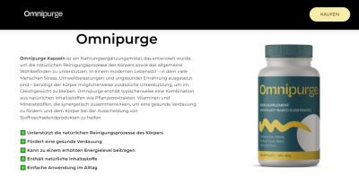 Omnipurge markedsføres som et kosttilskud, der er designet til at understøtte afgiftning og fordøjelses sundhed. Disse kapsler hævder typisk at hjælpe kroppen med at eliminere akkumulerede toksiner, forbedre tarmfunktionen og øge næringsoptagelsen. Selvom formuleringer kan variere afhængigt af producenten, indeholder sådanne produkter ofte en blanding af urteekstrakter, fiberkilder og naturlige afføringsmidler.