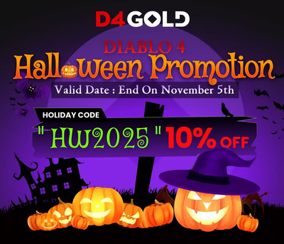 Diablo 4 Gold, items, carry runs, and boosts are all included in Halloween sale. Enter coupon code "HW2025" at checkout for an instant 10% discount. Available in multiple regions and servers, orders would ship instantly.