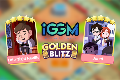 The designated gold stickers: "S22 - Bored & S22 - Late Night Neville" for Monopoly Go Golden Blitz event would go on sale on IGGM on February 3-4.