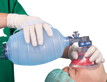 • يستخدم جهاز أمبو باج للتنفس الصناعي في الإسعافات الأولية.